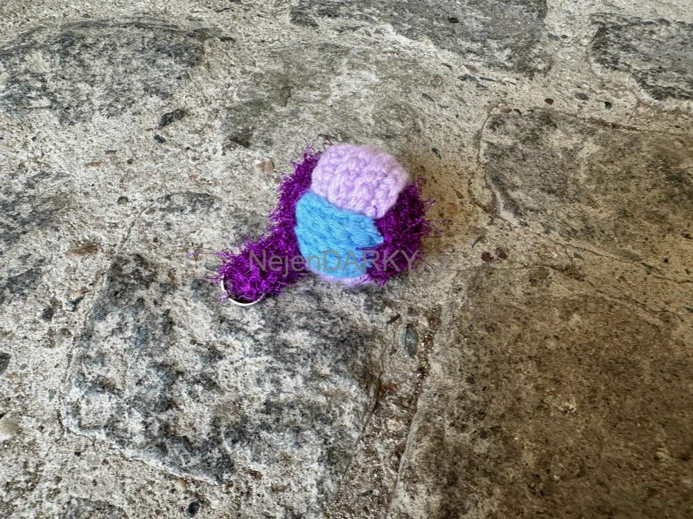 Materiál: bavlněná příze, duté vlákno, kroužek.